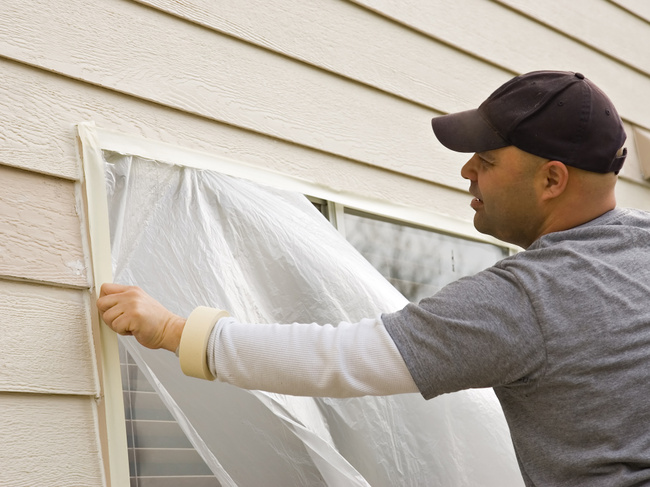 Masking and Taping: Carefully tape and mask areas like windows, doors, trim, and hardware to protect them from paint splatter.