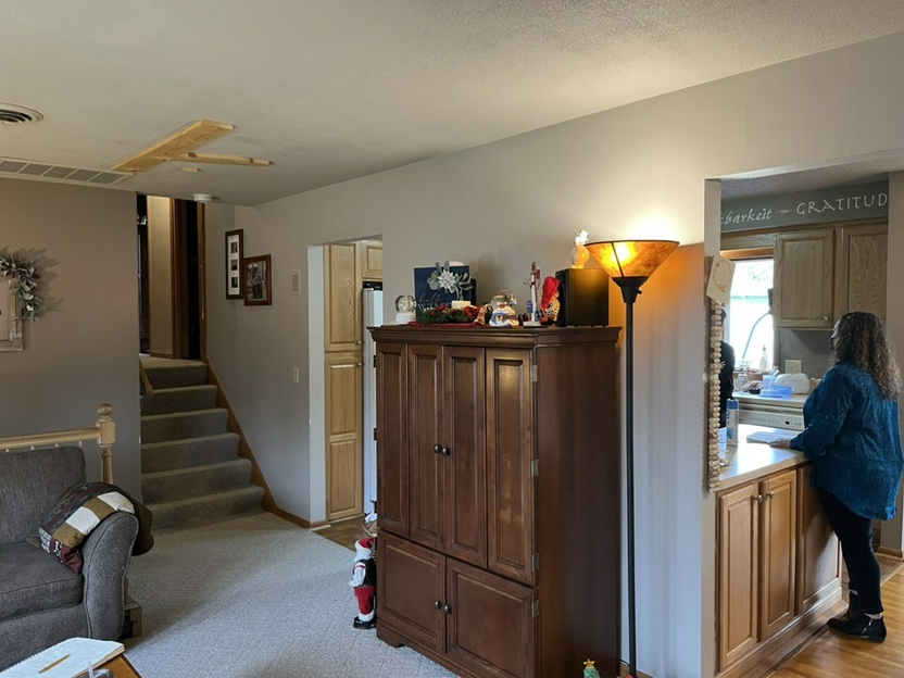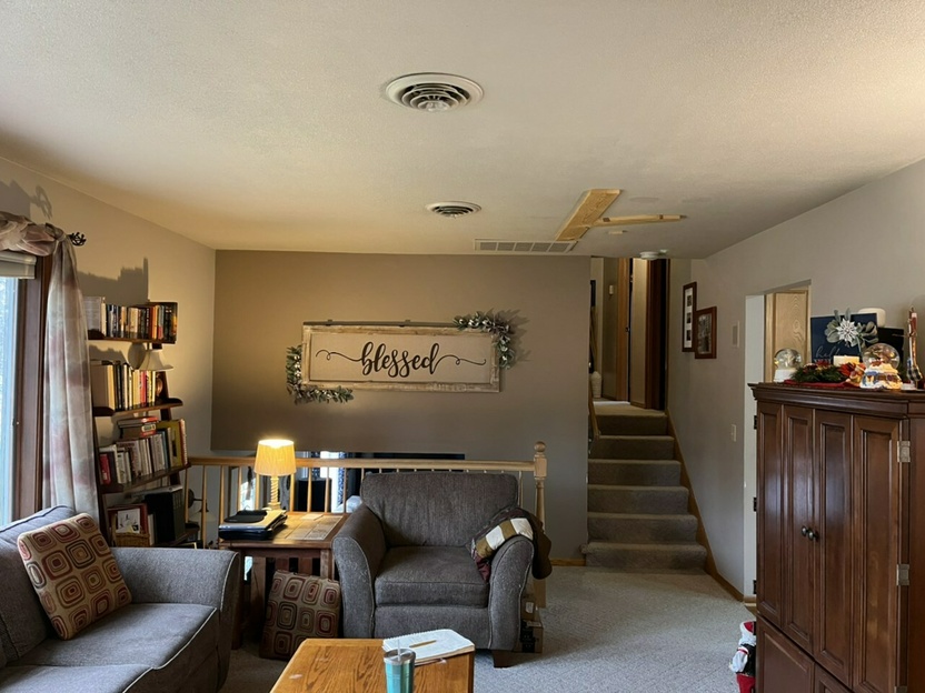 BEFORE & AFTER: The beam you see is decorative. The actual engineered beam is hidden in the ceiling.