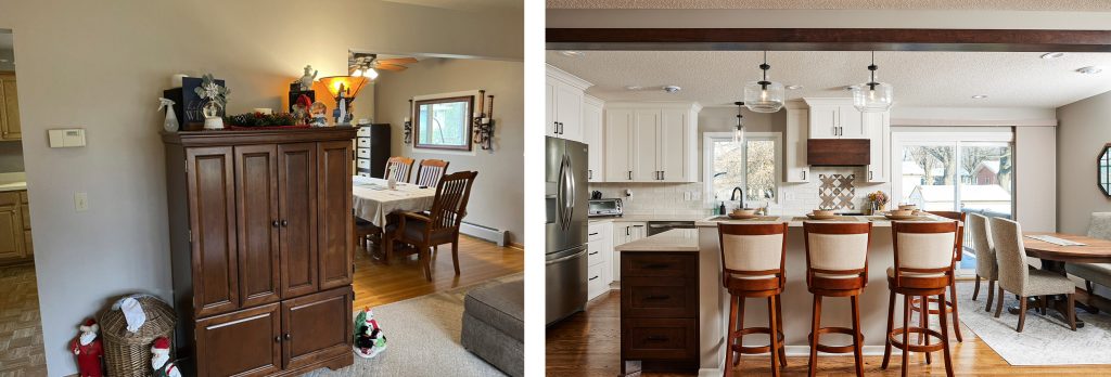 There are thousands of split-entry homes in the Twin Cities and most of them come with a cramped kitchen and with a small island, if any at all. And many, like this one, built in 1965, show decades of normal wear and tear. “It was a bit tired, but it was really about getting it to work better for these homeowners,” recalls Design Build Consultant David Long. “They wanted a better workflow and more storage along with a fresh new look and that’s what they got.”