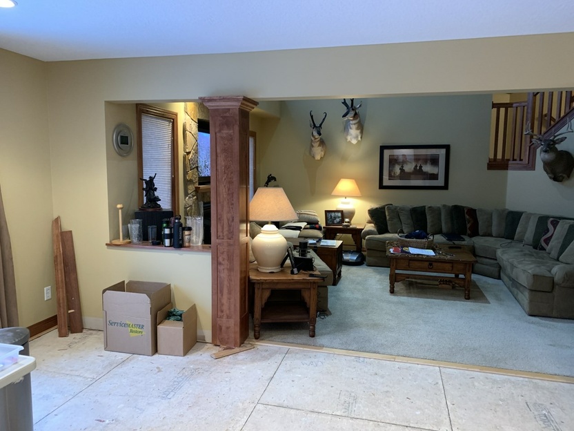 When Mike, the homeowner, called us back in January of 2020, he had already had the leak and the clean up done. Unfortunately, the company that did the water mitigation added to the damage already done to some of the lower kitchen cabinets in the process, so all the cabinets had to be replaced.
