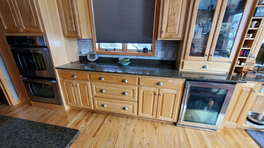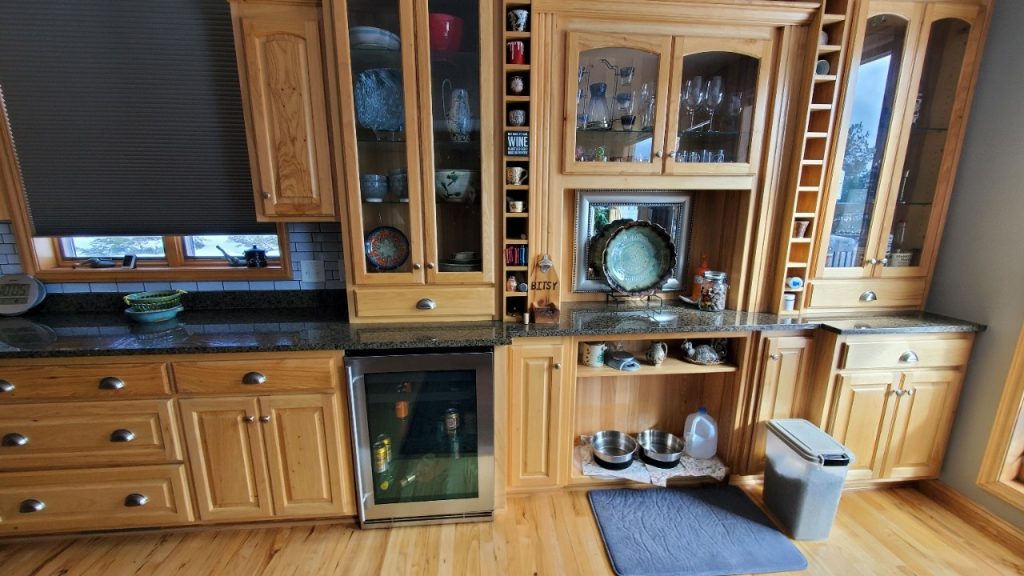 Before the remodel, the functionality layout of the kitchen presented issues. For example, the maple cabinets, once striking in contrasting hues, had grown dull with a natural patina from exposure to sunlight. And the drawers were too shallow and short to hold all cookery and grant full access. Other spaces in the kitchen, intended for future development, had remained unused with minimal utility while other areas were designed with too much utility. The sink, microwave, garbage disposal, dishwasher, and a tiny bar countertop all in a 12-foot square area only looked efficient—and mostly on paper.