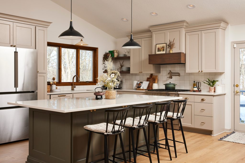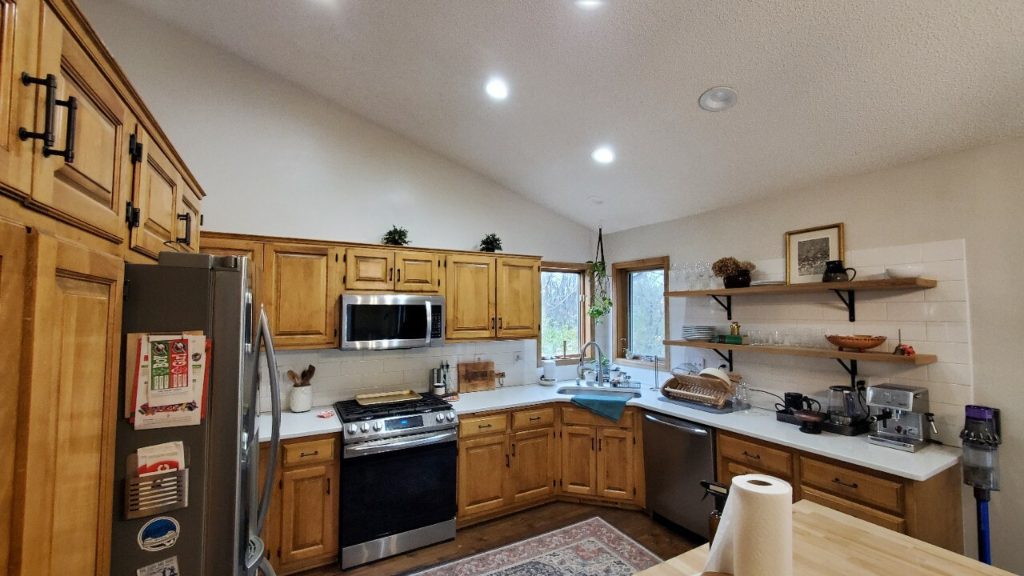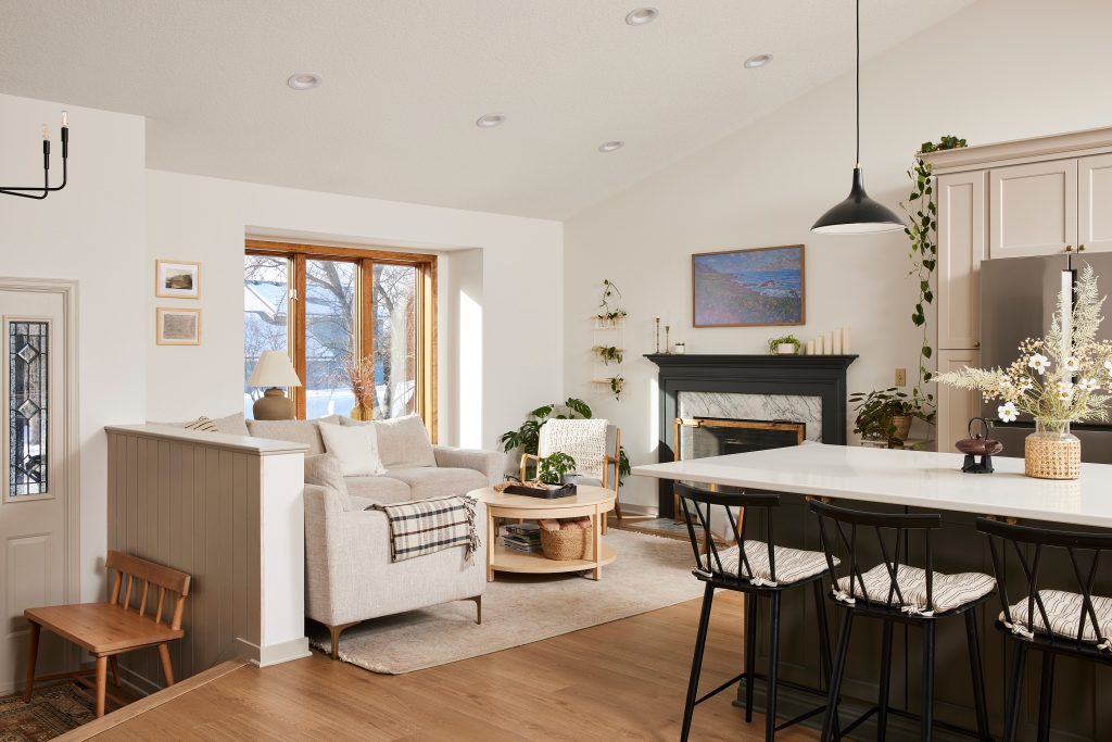 Adding more recessed lighting to the entire space was an essential and often overlooked aspect in many remodels. We also replaced all the flooring with durable LVP throughout the main floor.
