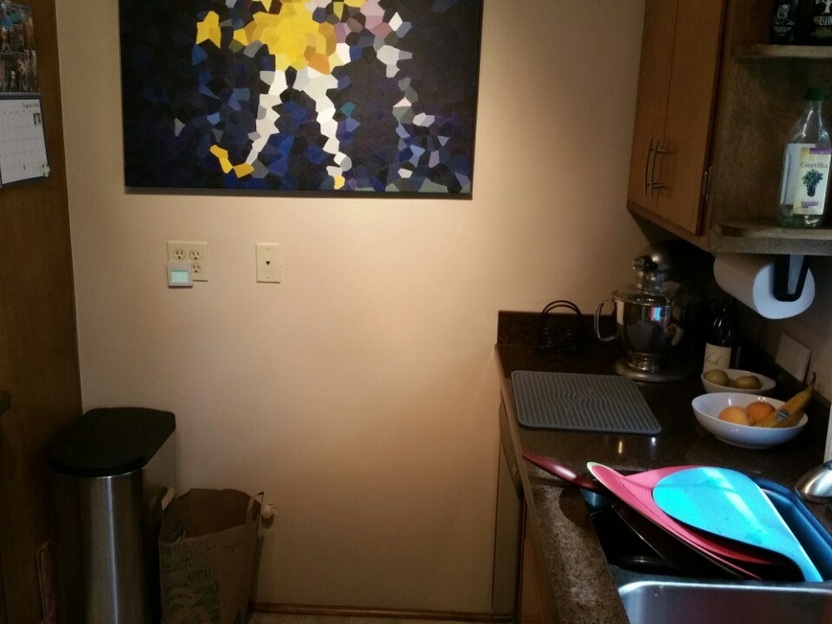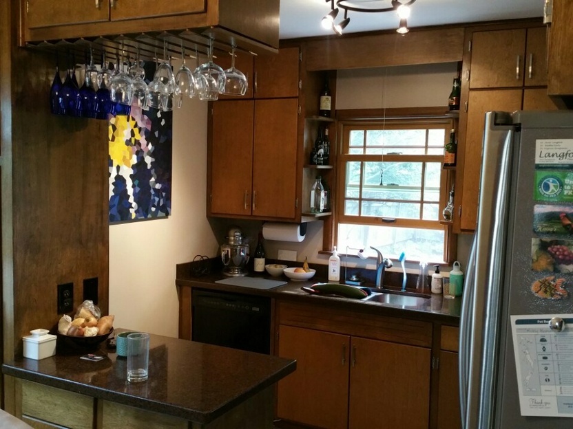 AFTER— View of kitchen addition back towards living area nd front entrance.