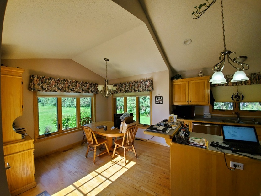 Kitchen island countertop is “Summer Hill” from Cambria. We were able to repurpose the triple casement window in the dining room to save the client thousands of dollars.