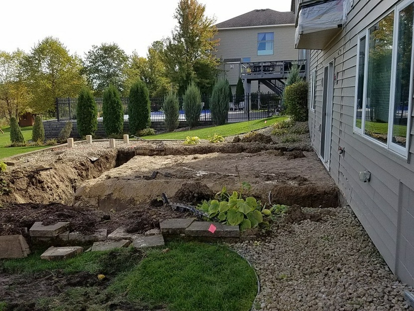 Existing conditions of the homeowner’s under deck porch: dark, cold, poorly illuminated, often used to store decking furniture during spring, fall and winter months instead entertaining family and friends. After demo a new foundation needed to be set before building the new structure.
