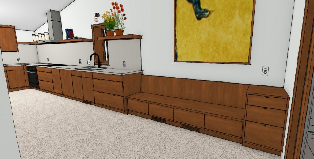- Kitchen & Baths— Full overlay, Plain sliced black walnut, white melamine interiors