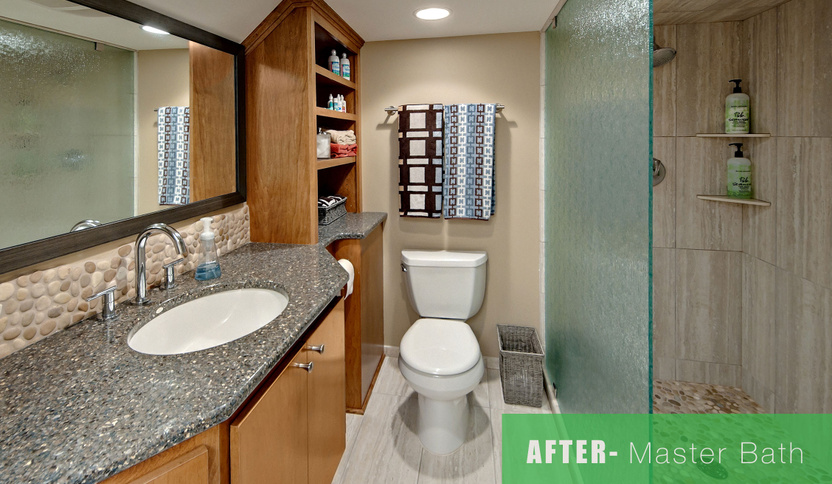 While this Shoreview Lake Home met the clients’ basic structural and space needs, there were some major issues that needed correcting in order to make the home more livable and enjoyable. For starters, there was an existing addition to the home that was poorly done and needed a significant cosmetic update. There was also a general lack of care and maintenance, which required every surface in the home to be replaced, retouched or redesigned—four bathrooms, two bedrooms, a dinning room and kitchen. The result was a whole house makeover with dramatic results and ecstatic homeowners.
