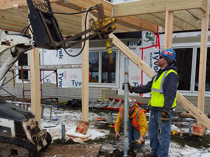 These homeowners were tired of baking in the sun on their hot south-facing deck in order to “enjoy” their backyard. They wanted a shaded living area that gave them a bug-free, a comfortable view with more privacy and easy access to their backyard and play area for the kids. But they didn’t want a conventional slap on the side of the house kit or anything really that looked as if it were not part of the original home. The front exterior of the home featured the use of wide trim around windows and such. We noticed that architectural detail and incorporated it into the design of their screened in porch, stairs, and railing.