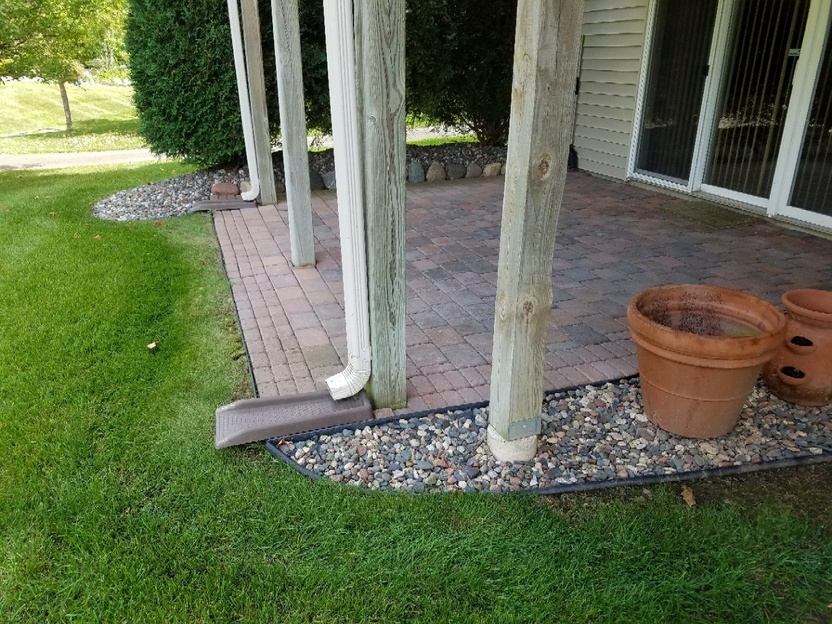 - Stamped patio concrete — Base concrete color Hay, with variation colors Burnt Umber and Copper Canyon with perimeter a border.