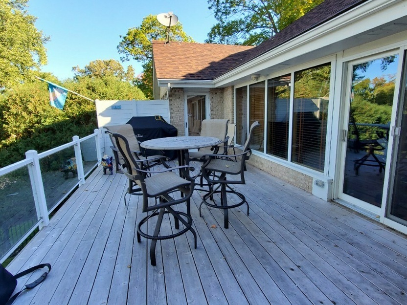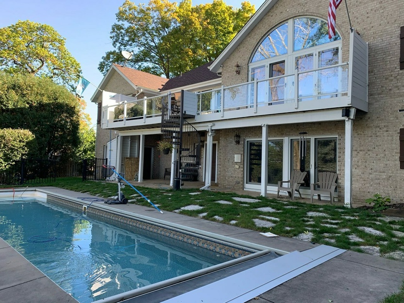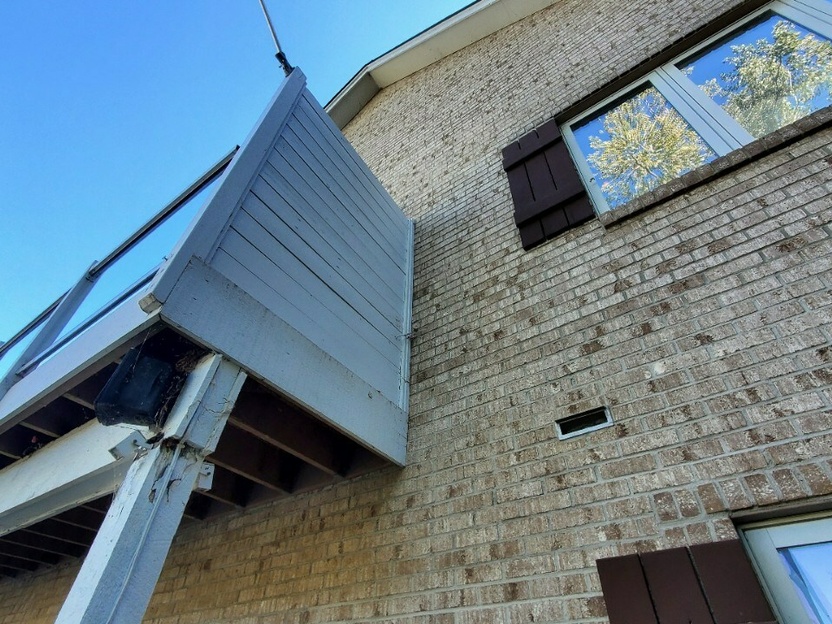 We replaced the entire structure, including the failing support posts and the stairs. Added powder-coated extruded aluminum railings for durability and strength.